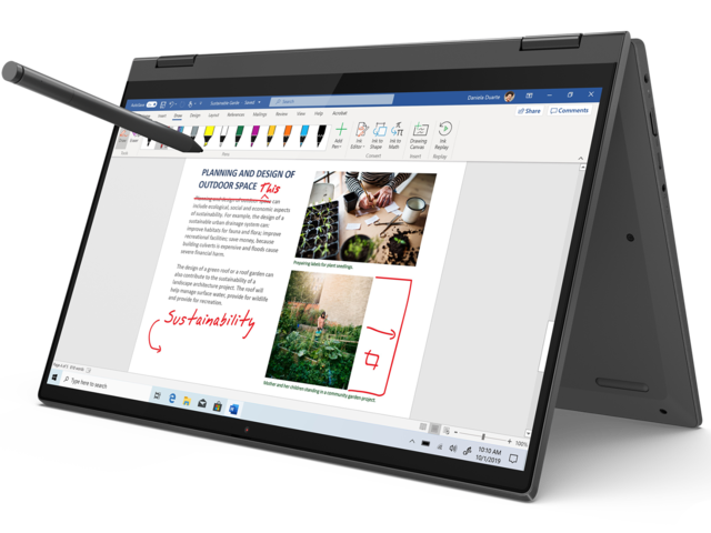 IdeaPad Flex 5 (14, Intel) може да се сгъва на 360 градуса и да се превръща от лаптоп в таблет и обратно, за да можете да го ползвате така, както е най-подходящо за вас. Поддръжката на опционалната дигитална писалка ви дава нов начин да улавяте ценните мигове на вдъхновение в движение. А ако ви потрябва помощ, просто кажете – Alexa е на ваше разположение и ще отговори на всички ваши въпроси (на местата, където се предлага).