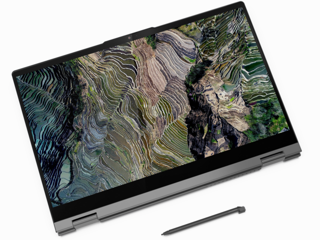 ThinkBook 14s Yoga е гъвкав, мощен лаптоп 2-в-1, идеален за използване от малкия бизнес. Той е тънък, лек, мощен и лесен за използване с четири режима – лаптоп, таблет, стойка или палатка. Плюс това разполага с интелигентни опции като Modern Standby и приложения, които се отворят автоматично, когато използвате интерактивната писалка в специфичен режим.