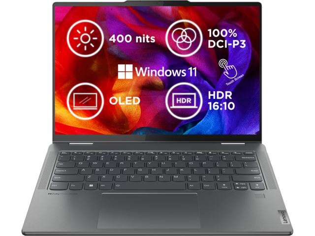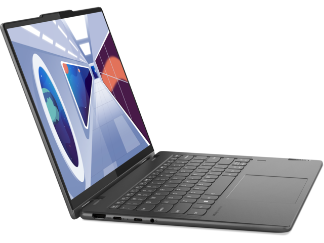 Насладете се на максимална гъвкавост, устойчивост и комфорт с лаптопа Yoga 7 Gen 8. С ергономичния си дизайн Comfort Edge този конвертируем лаптоп 2 в 1 ви позволява да изпълнявате много задачи както никога досега. Свийте се на дивана, за да превъртате социалните медии, или предавайте видео в режим на таблет. Свършете малко работа в местното кафене в режим на лаптоп или проведете разговор с приятели или колеги в режим на палатка. Създаден е така, че да се адаптира към нуждите ви.