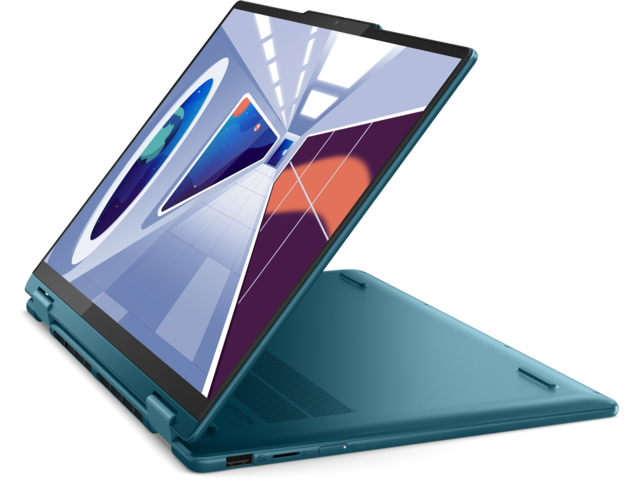 Насладете се на максимална гъвкавост, устойчивост и комфорт с лаптопа Yoga 7 Gen 8. С ергономичния си дизайн Comfort Edge този конвертируем лаптоп 2 в 1 ви позволява да изпълнявате много задачи както никога досега. Свийте се на дивана, за да превъртате социалните медии, или предавайте видео в режим на таблет. Свършете малко работа в местното кафене в режим на лаптоп или проведете разговор с приятели или колеги в режим на палатка. Създаден е така, че да се адаптира към нуждите ви.