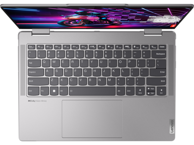 Ясните визуални ефекти на обширния дисплей, съчетани с плътен звук на лаптопа Yoga 7 2 в 1, създават перфектни условия да се потопите във филми и иновативни проекти. По-големият обхват на цветовата гама осигурява най-живите и реалистични изображения, а Dolby Vision® изпълва екрана с ненадминати детайли и интензивни контрасти. Освен това предните високоговорители, усъвършенствани от Dolby Atmos®, усилват мощен звук, който напълно ви потапя. С 10-точковия мултитъч стъклен панел всичко се движи под движението на пръстите ви.