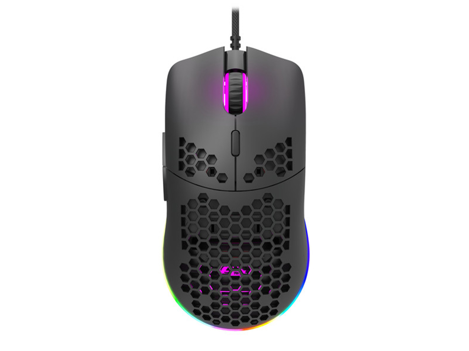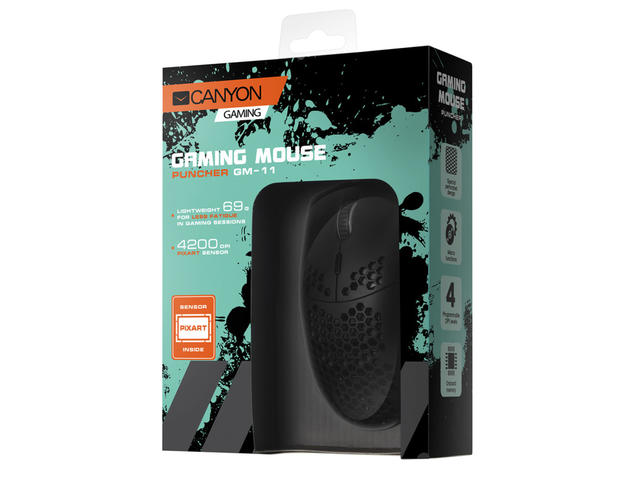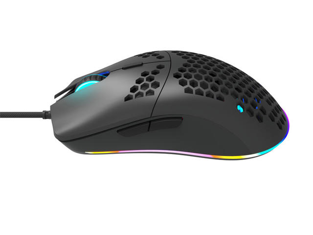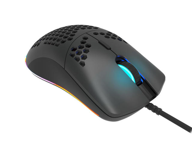 Тази привличаща вниманието перфорация е проектирана така, че да намали теглото на корпуса на мишката, като по този начин намалява натоварването на мускулите на ръцете. Освен това перфорацията позволява вентилация, за да се намали изпотяването на кожата и да се направи мишката по-удобна по време на дълги гейминг сесии. Лекият перфориран корпус ви помага да поддържате висока скорост на реакция във времето.