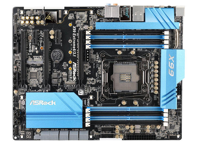 Както може би се досещате от името, настоящото дъно и MSI X99A GODLIKE GAMING CARBON си приличат. Да, и двете дъна са с еднакъв чипсет, Intel X99, което от своя страна означава, че двата модела разполагат със сходен сокет, 2011-3. Въпреки че MSI не бяха включили наскоро обявения Intel Core i7-6950X в списъка на поддържани процесори, ASRock са се погрижили той да бъде един от моделите, който безпроблемно да бъде инсталиран на X99 Extreme6/3.1.