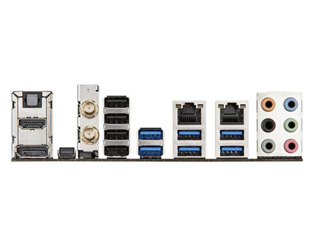 - 1 x PCIe 2.0 x16 (max at x4 mode)(X16_3 The PCIe , USB3_E56 и SATAExpress_E1 съединители споделят една и съща честотна лента . Настройка по подразбиране за x16_3 на PCIe е в автоматичен режим , който оптимизира автоматично честотната лента на системата. Ако използвате две от тези конектори , системата автоматично изключва неизползваните конектори)