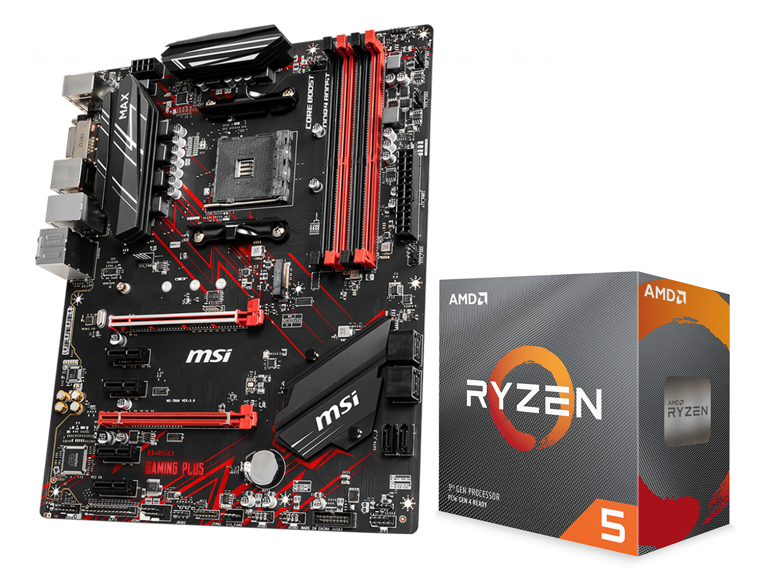 Дънна платка MSI B450 GAMING PLUS MAX + процесор AMD Ryzen 5 3600. |