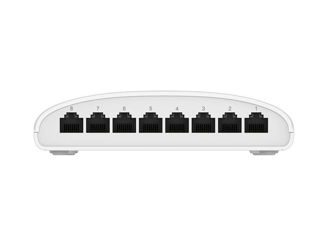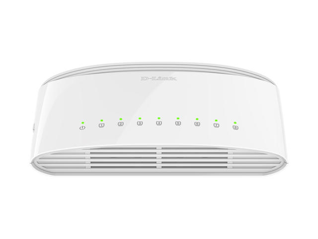 - DGS-1008D 8-портов гигабитов десктоп суич на D-Link създава светкавичнобърза мрежа за Вашия офис, тъй като неговите Gigabit Ethernet портове осигуряват високоскоростни кабелни връзки за до осем компютъра или други устройства. DGS-1008D също така разполага с качество на услугата QoS, което дава предимство на мрежовия трафик, така че данните, които са чувствителни към момента, да се доставят ефективно, дори и по време на поредици с висок трафик на данни. Той е стилен, лесен за използване и е готов за IPv6 за надеждна мрежа днес и утре.