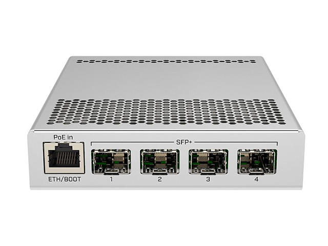 - CRS305 е много мощен и комппактен комутатор предлагащ четири SFP+ слота за до 10Gbit скорости на слот