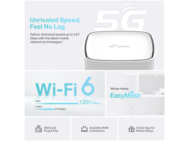 - Увеличете вашата 5G скорост - Възползвайте се от вашата усъвършенствана 5G мрежа със скорост на изтегляне до 4,67 Gbps. Споделете вашата 5G мрежа с множество Wi-Fi устройства и се насладете на Ultra HD филми без прекъсване, светкавично бързо изтегляне на файлове и плавни видео чатове и видеоконференции.