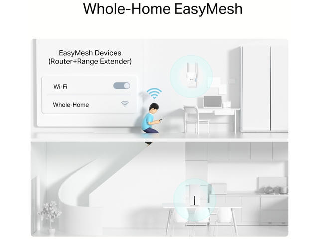 - Съвместим с EasyMesh - Работете съвместно с продуктите на EasyMesh, за да осигурите по-гъвкава и рентабилна Mesh мрежа с едно Wi-Fi име за безпроблемно покритие на целия дом.