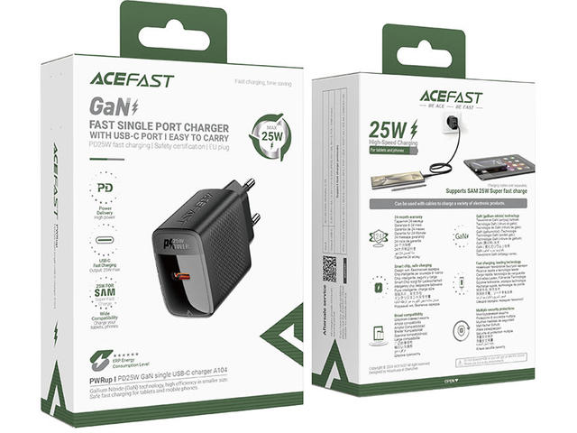 - Изход: USB-C: 3,3V-5,9V⎓3A / 3,3V-11V⎓2,25A (PPS) / 5V⎓3A / 9⎓2,77A - макс. 25 W (PPS / PD2.0 / PD3.0 / QC4+ / QC3.0 / QC2.0 / AFC / FCP / SCP).