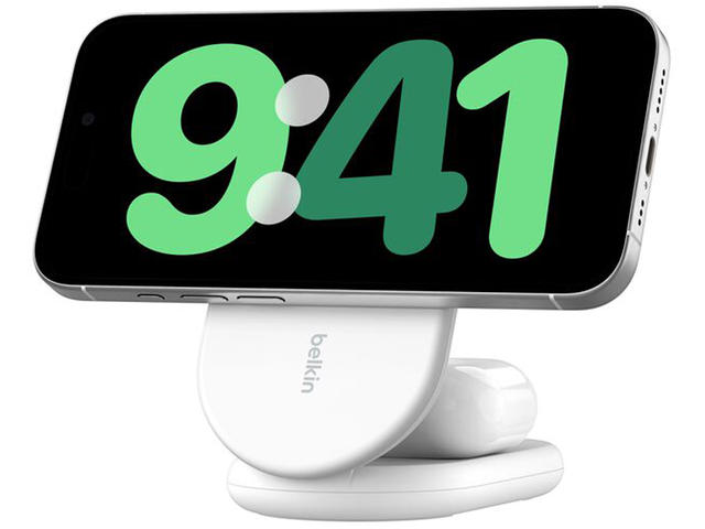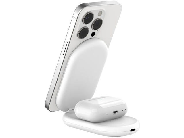 - Мощна магнитна връзка, която закрепва iPhone към стойката за зареждане