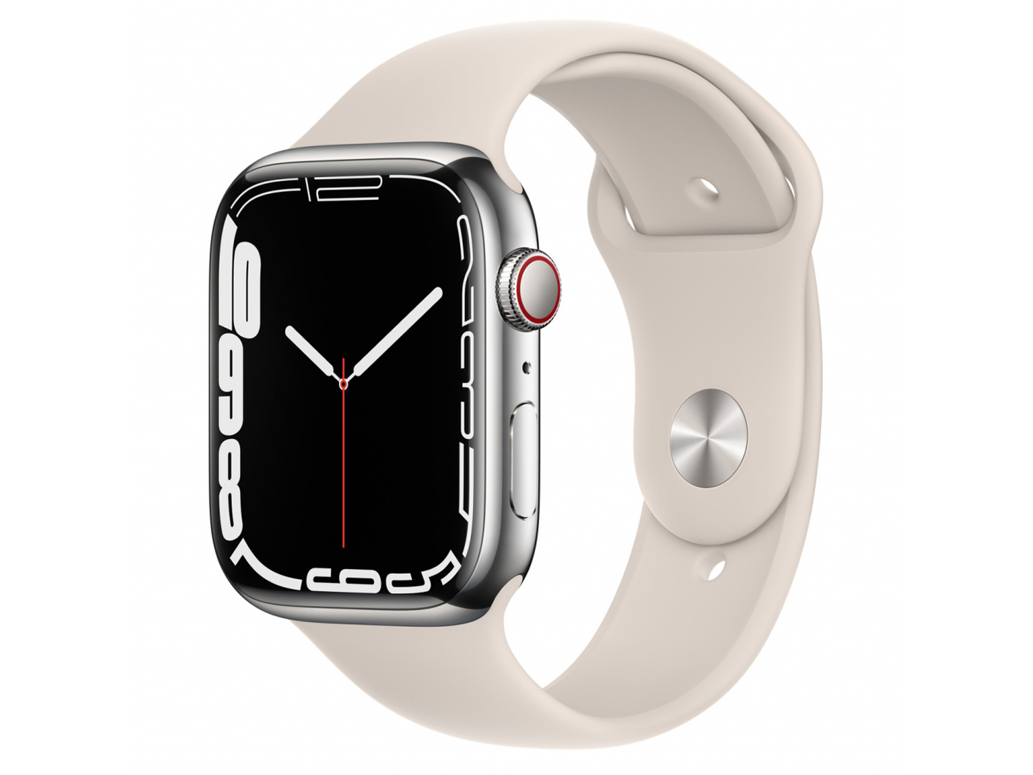 Apple Watch S7 GPS Cellular, 41mm Silver Stainless Steel Case with Starlight Sport Band - Regular