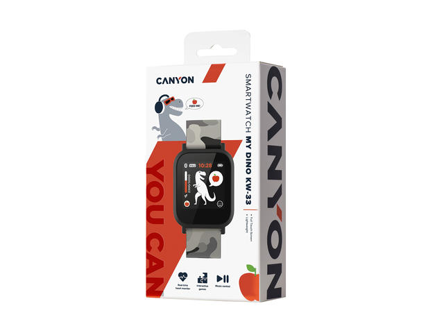 Часовникът MyDino е подходящ за деца между 8 и 11 години. Интерфейсът на устройството е създаден изцяло от дизайнерите на Canyon в хип-хоп стил. В това устройство ‚живее‘ симпатичен динозавър. Дино е виртуален приятел в света на здравето и спорта. Той се нуждае от ябълки, които се добавят към запаса му, когато детето спортува или се движи. За разлика от повечето детски модели на пазара MyDino не използва SIM карта и няма възможност за следене на местоположение, тъй като основната му цел е друга - да стимулира физическа активност по интересен за детето начин. МyDino KW-33 е детски смарт часвник, който има всички базови функции на часовниците за възрастни като статистика за активност, продължителност на съня, измерване на пулс, крачкомер, получаване на известия за съобщения и обаждания и други. Спецификации: