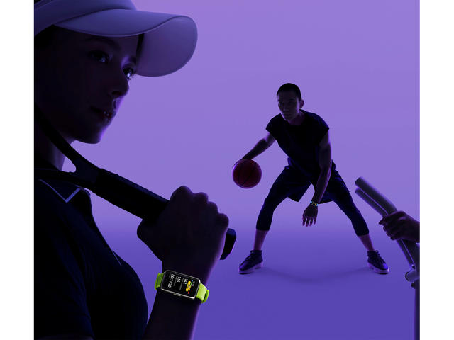 • Устройството може да работи максимум 14 дни. (Мониторингът на сърдечния ритъм е винаги включен, HUAWEI TruSleep™ е изключен през нощта, 30 минути тренировки на седмица, известията за съобщения са включени (включително 50 съобщения, 6 повиквания и 3 аларми на ден), а екранът се включва 200 пъти на ден.)