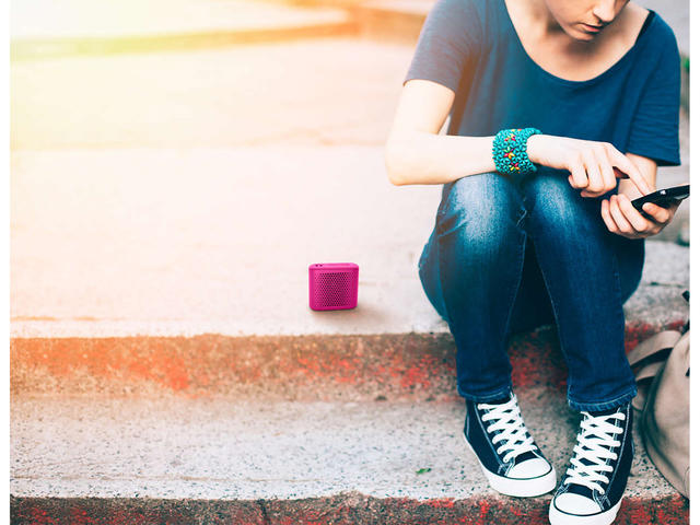 Вградена акумулаторна батерия, за да слушате музика навсякъдеСлушайте музика с мощен звук – навсякъде и по всяко време. Вградената акумулаторна батерия ви позволява да се наслаждавате на любимата си музика без плетеницата от захранващи кабели и без неудобството да търсите електрически контакт. Слушате прекрасна музика, сега със свободата на пълната преносимост. |