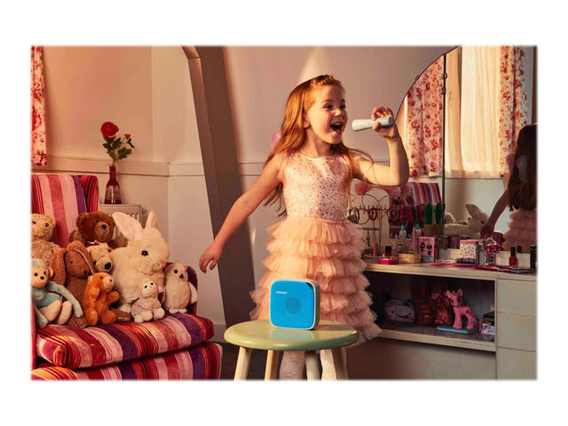 - Този ултрапреносим Bluetooth високоговорител разполага с безжичен микрофон. Децата могат да пеят с музиката, да разказват истории или дори да изпълняват сцени от филми с приятелите си! Независимо от това какво изберат да изпълнят записването с едно докосване ги улеснява да запишат песните си на micro SD карти.