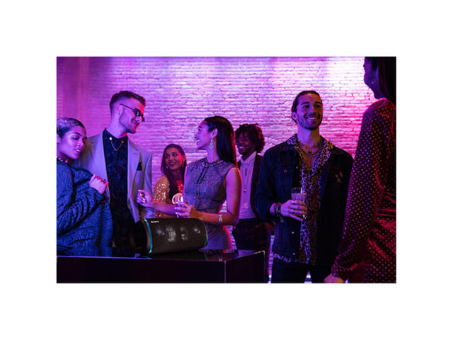 - Насладете се на една песен, умножена с функцията Party Connect. Свържете до 100 съвместими безжични високоговорителя с BLUETOOTH® и музиката и светлините се синхронизират, за да танцуват всички в един ритъм. Настройте произволен модел или мигане на светлините в кръг.