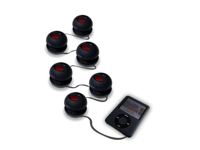 - Особено интересна при тази мини озвучителна система е възможността да навързвате един за друг поредица от подскачащи високоговорители до 50 на брой (а може би дори и повече), при което мощността на звуковата вълна се увеличава прогресивно. А това за подскачащите високоговорители е съвсем реално, а не измислица, при усилване на максимум високоговорителите наистина започват да подскачат при силен бас.