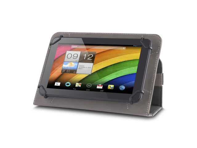 Удобен и приятен универсален калъф за вашия таблет с размери от 7"-8". Изработен от мека изкуствена кожа с рамки, в които да се постави таблета може да сте сигурни, че той ще е здраво захванат. Гъвкавата страна на калъфа за таблети може да се огъва, за да можете да го поставите в най-удобната за вас позиция за гледанен видео. Вътрешната страна има и ръкохватка с която да държите удобно таблета в калъфа без да ви е страх, че може да го изтървете. Таблета също има две джобчета, в които може да поставите карти/визитки превърщайки го в единственото нещо, което ще ви трябва да носите на кратки пътувания.