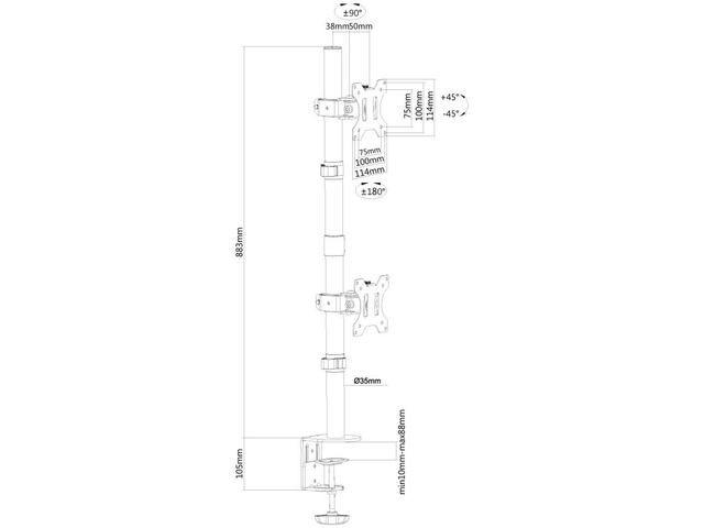 - VESA стандарт: 75x75 мм - 100x100 мм