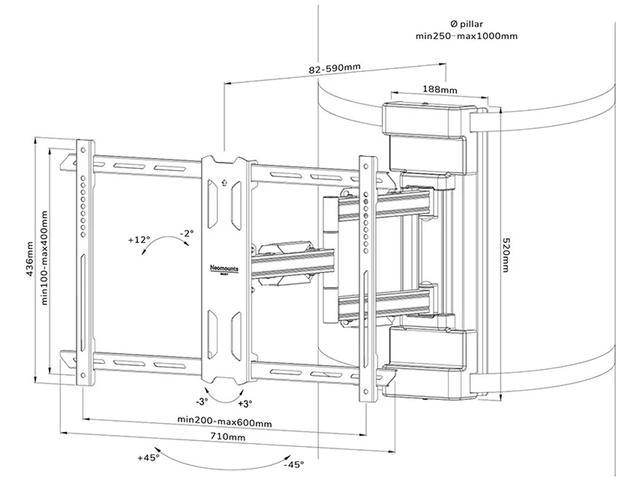 - VESA стандарт: 200x100 - 600x400 мм