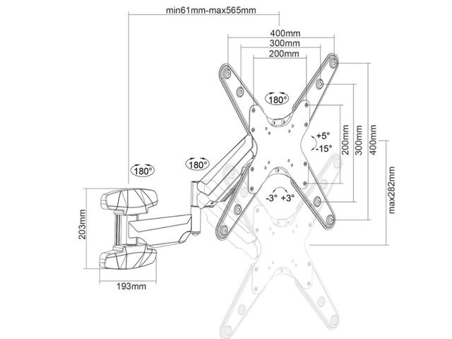 - VESA стандарт: 75x75 мм - 400x400 мм
