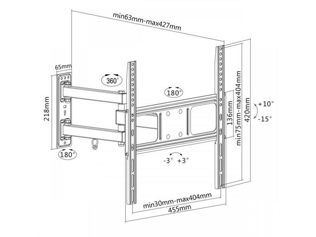 - Разстояние до стената: 63 - 427 см