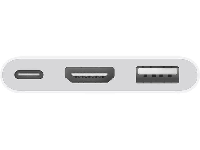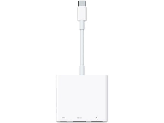 Многопортовият адаптер USB-C Digital AV ви позволява да свържете своя Mac, iPad или iPhone с USB-C към HDMI дисплей, като същевременно свържете стандартно USB устройство и USB-C кабел за зареждане.