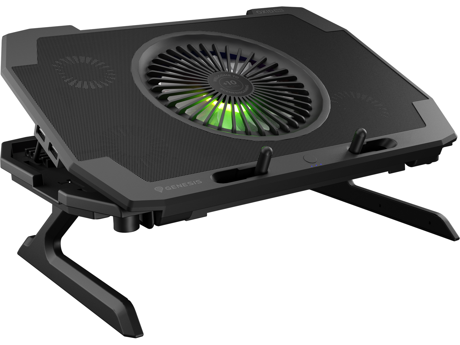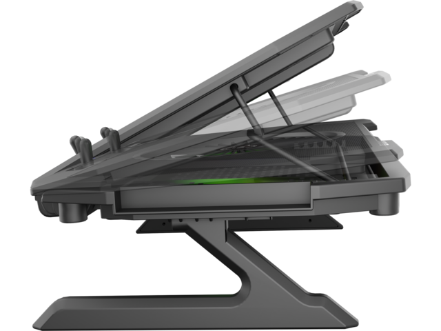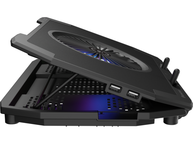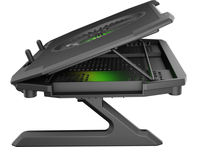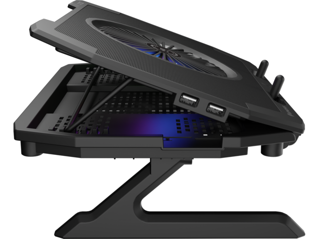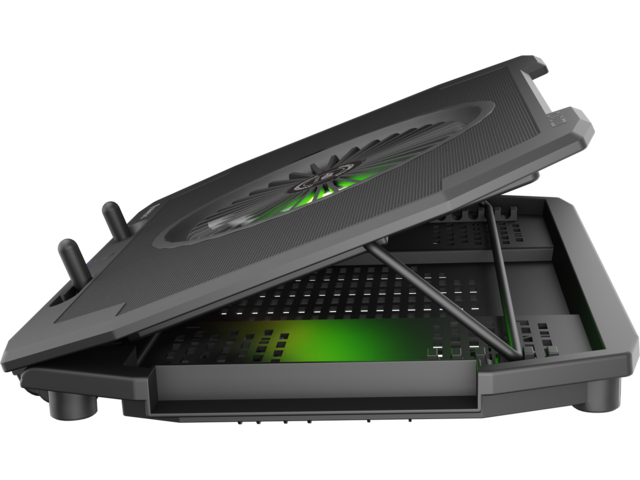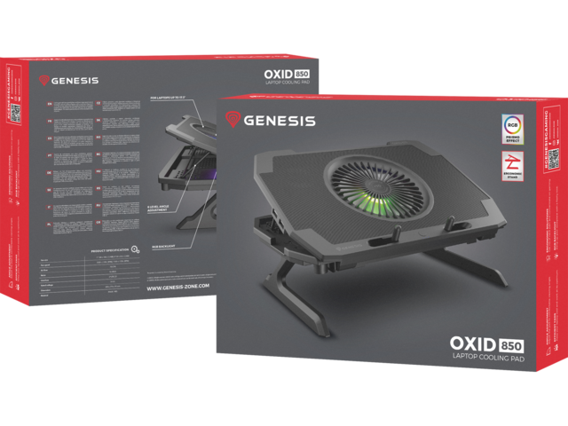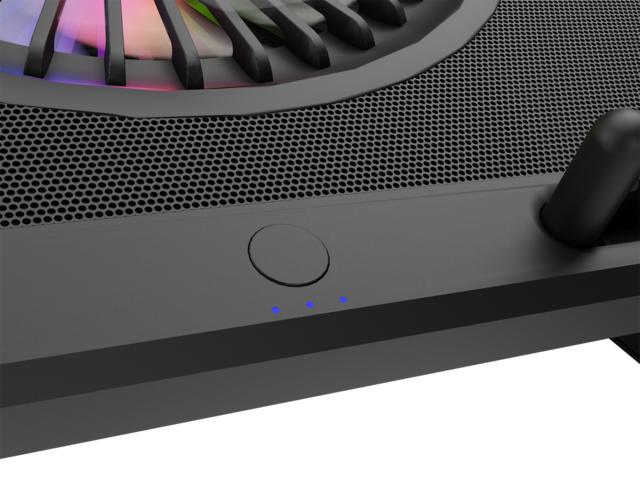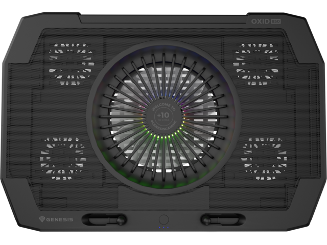 Oxid 450 RGB е оборудван със стабилна и ефективна система за охлаждане, която разчита на четири по-малки вентилатора, които извличат топъл въздух от вашия лаптоп и един голям вентилатор, който доставя хладен въздух. Разположението на вентилаторите осигурява отлично и ефективно охлаждане, а допълнителният двустепенен контрол на скоростта позволява да увеличавате охлаждането по време на най-горещия геймплей.