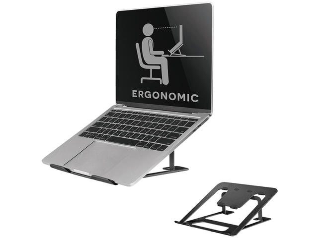 - Neomounts NSLS085BLACK е универсална стойка за лаптопи с размер от 10„ до 17“ и максимална тежест до 5 кг.