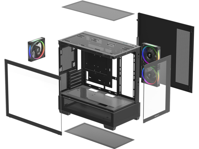 ОхлажданеВключени вентилатори: 2x 120 мм PWM aRGB, с обърнати перки + 1x 120 мм PWM aRGB