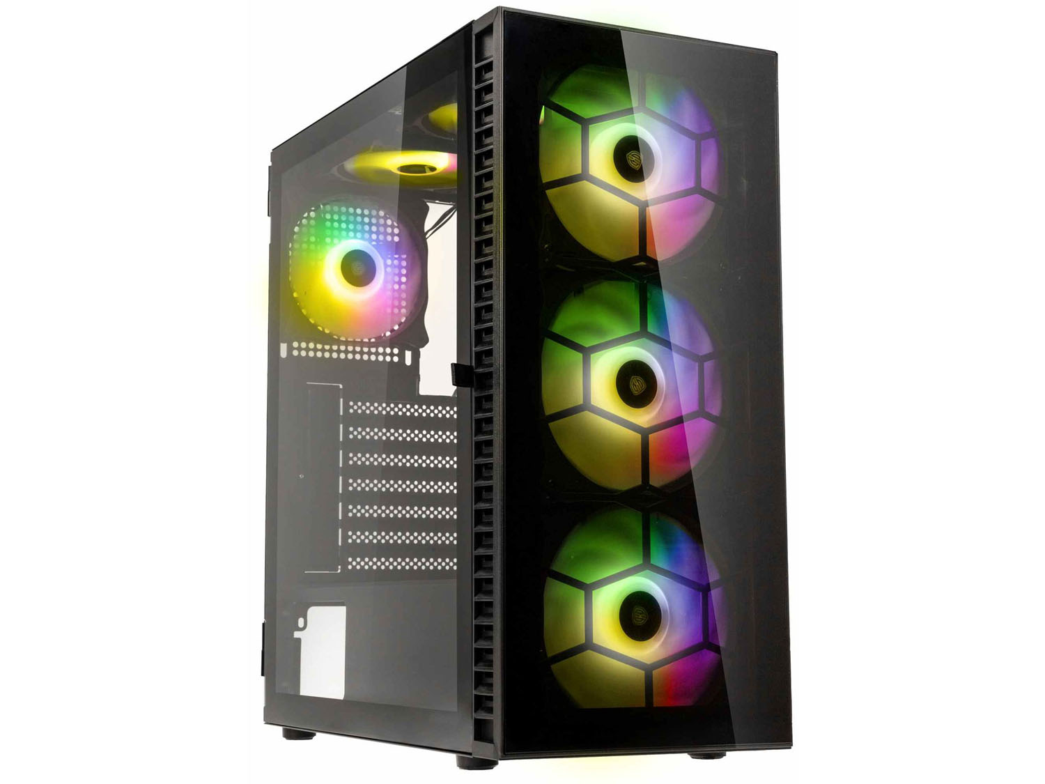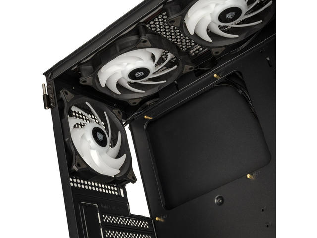 Отвори за разширителни слотове: PCIe слотове 7 Скрити слотове за устройства: 2 x 3,5" / 2,5" (твърд диск); 2 x 3,5" / 2,5" (тава на дънната платка); 2 x 2,5" (тава на дънната платка)