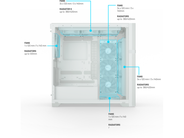 ОхлажданеВключени вентилатори: 1x 140 мм