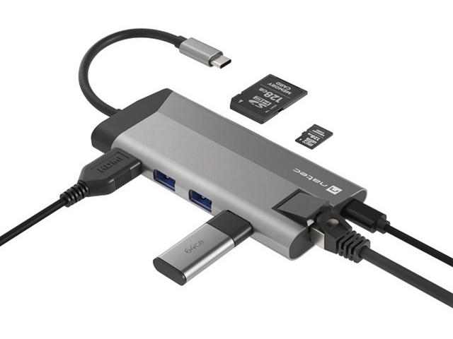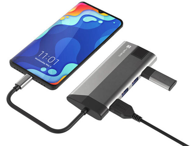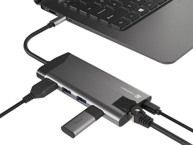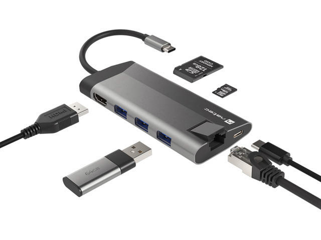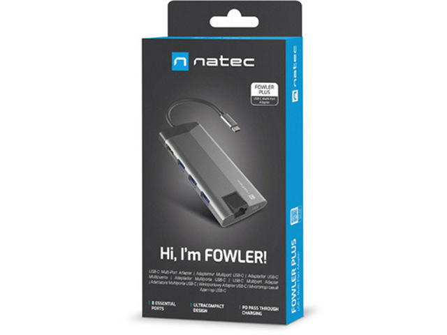 Natec Fowler Plus е компактен микропорт, който ви позволява да свържете всичко, от което се нуждаете. Той е оборудван с 3 конектора USB тип - A, порт HDMI 1.4 с резолюция 4K, два четеца за карти (SD и microSD), RJ-45 (1 Gb/s) и конектор USB тип - C със стандарт за зареждане Power Delivery 3.0. Липсата на конектори в устройства като лаптопи е сериозен проблем. Не позволявайте това да ограничи ефективността ви. Постоянното превключване на устройствата между конекторите не само отнема ценното ви време, но и влияе на фокуса ви. Не е нужно да решавате кое устройство да изключите, за да свържете друго, като имате на разположение три конектора USB 3.0 тип - А. Освен това можете да копирате големи файлове много по-бързо благодарение на стандарта USB 3.0, който позволява скорост на трансфер до 5 Gb/s. Natec Fowler Plus предлага висока разделителна способност чрез HDMI 1.4, който поддържа предаване на 4K изображения. Насладете се на високо ниво на детайлност дори на голям екран. В Natec Fowler Plus може да се намери и Rj-45. Освен това наличието му не означава само, че можете да се свържете традиционно с кабел към мрежата, но и по-висока скорост на предаване до 1 Gb/s и липса на каквито и да било смущения, които могат да възникнат при използване на безжична връзка. Компютърът ви не разполага с вграден четец на карти? Не се притеснявайте. Natec Fowler Plus ви е подготвил. Благодарение на вградените четци за SD и microSD карти можете лесно да копирате любимите си снимки или записани филми. И двата четеца са винаги под ръка. Зареждането на устройства чрез вградения конектор е много полезна функция. Можете да зареждате устройството си с помощта на Natec Fowler Plus, а благодарение на Power Delivery 3.0 можете да го правите дори по-бързо от преди. Това е възможно благодарение на автоматичния избор на напрежение и мощност (до 100 W), необходими за бързо и безопасно зареждане. С адаптера Natec Fowler Plus можете да използвате пълния потенциал на смартфона си с технологиите DEX, Huawei EMUI Desktop или PC Mode. Свържете смартфона си към монитор или телевизор, за да се насладите на възможностите на стандартен компютър. Използването на няколко приложения и превключването между тях ще бъде още по-удобно, когато свържете клавиатура и мишка. Създайте своето мечтано, отдалечено работно или учебно пространство без никакви затруднения.
