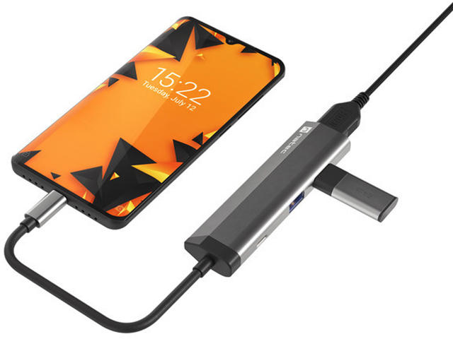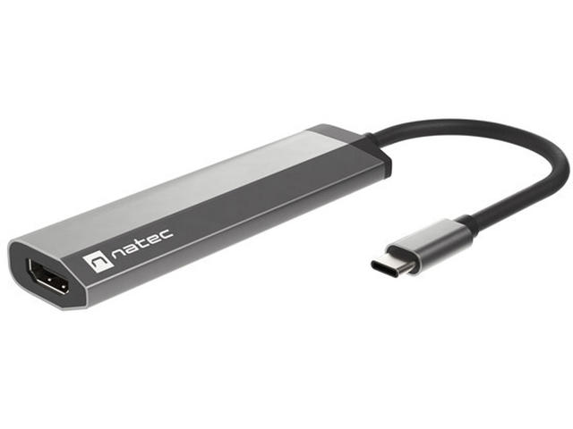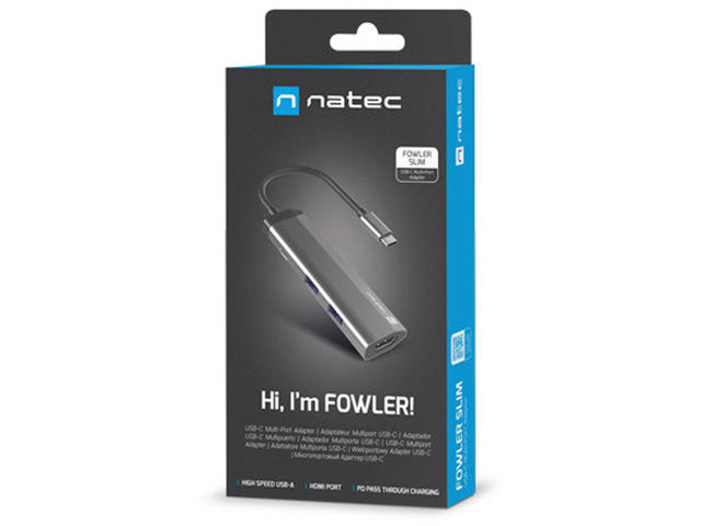 Natec Fowler Slim е компактен микропорт, който ви позволява да свържете всичко, от което се нуждаете. Той е оборудван с 2 конектора USB тип - A, порт HDMI 1.4 с резолюция 4K и конектор USB тип - C със стандарт за зареждане Power Delivery 3.0. Липсата на конектори в устройства като лаптоп е сериозен проблем. Не позволявайте това да ограничи ефективността ви. Постоянното превключване на устройствата между конекторите не само отнема ценното ви време, но и влияе на фокуса ви. Не е нужно да решавате кое устройство да изключите, за да свържете друго, като имате на разположение два конектора USB 3.0 тип - А. Освен това можете да копирате големи файлове много по-бързо благодарение на стандарта USB 3.0, който позволява скорост на трансфер до 5 Gb/s. С адаптера Natec Fowler Slim можете да използвате пълния потенциал на смартфона си с технологиите DEX, Huawei EMUI Desktop или PC Mode. Свържете смартфона си към монитор или телевизор, за да се насладите на възможностите на стандартен компютър. Използването на няколко приложения и превключването между тях ще бъде още по-удобно, когато свържете клавиатура и мишка. Създайте своето мечтано, отдалечено работно или учебно пространство без никакви затруднения. Зареждането на устройства чрез вградения конектор е много полезна функция. Можете да зареждате устройството си с помощта на Natec Fowler Slim и благодарение на Power Delivery 3.0 можете да го правите дори по-бързо от преди. Това е възможно благодарение на автоматичния избор на напрежение и мощност (до 100 W), необходими за бързо и безопасно зареждане. Изисквания за операционна система: Windows XP, Windows Vista, Windows 8, Windows 7, Windows 11, Windows 10, MAC, Linux, Android Интерфейс: USB Type-C Портове: