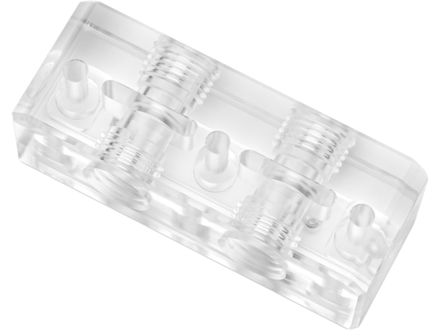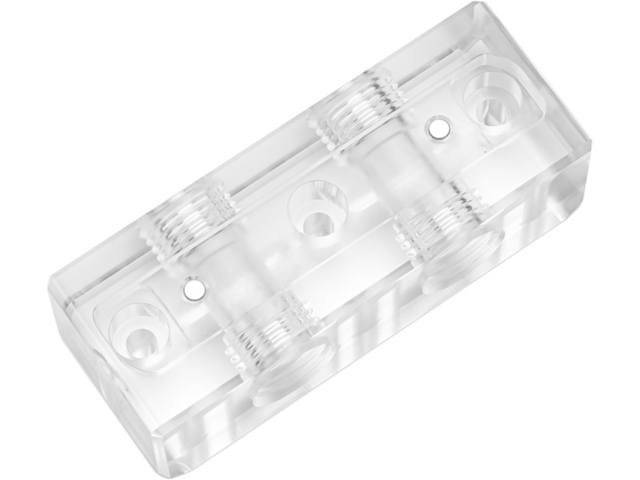 EK-Quantum Scalar² Terminal - Plexi е акрилен терминал, който замества стандартния черен POM ацетален терминал на водните блокове Vector² GPU. Има четири порта G1/4″, два отгоре и два отдолу. Елегантните магнитни капаци могат да се използват за скриване на винтовете на клемите, те се използват повторно от оригиналната клема и не са част от опаковката. Те позволяват завъртане на брандирането, когато водният блок на GPU е обърнат в кутията или се използва на вертикална стойка за GPU. Този терминал е CNC машинно изработен от стъклоподобен лят акрил. Съвместимост: Vector² GPU водни блокове Техническа Спецификация: