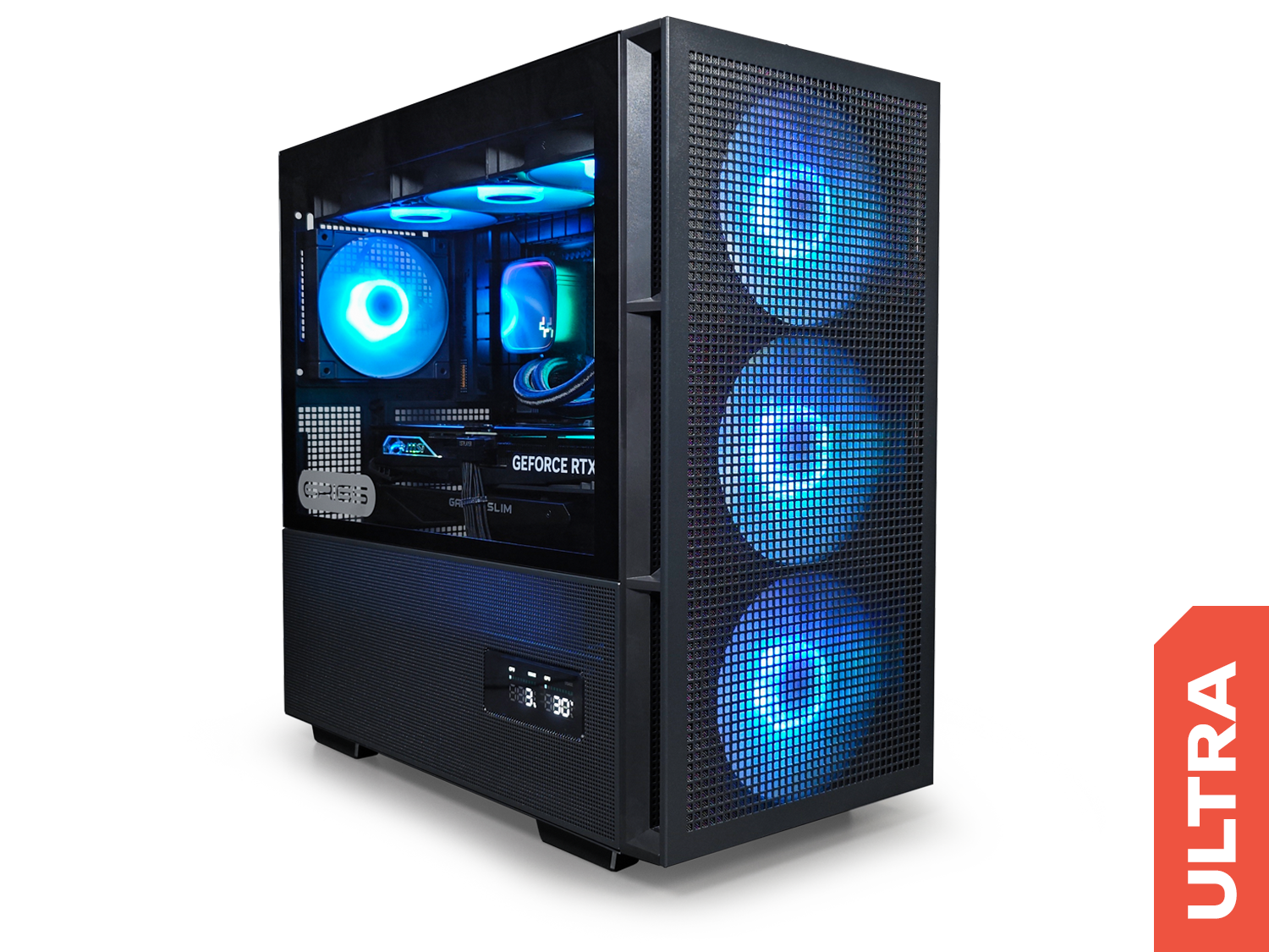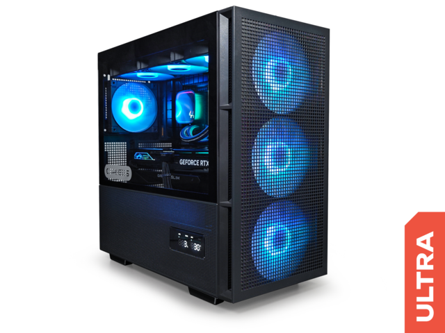 Серията SIRIUS вдига нивото на визията. Тази конфигурация впечатлява с прецизно изработена mesh кутия и истинския геймърски акцент – вграден дисплей, който следи в реално време системните показатели и производителността, докато сетъпът ти изглежда убийствено.