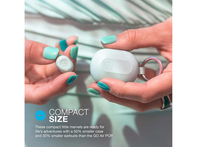 | Допълнителни функции | 50% по-малък калъф от GO Air POP, 30% по-малки слушалки, Свързване с множество устройства с Bluetooth Multipoint, Персонализирайте звука и изживяването си чрез приложението JLab, Режим Be Aware за безопасно слушане |