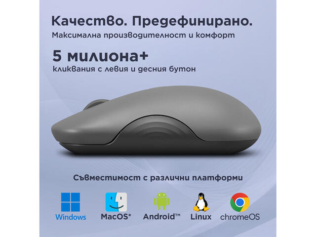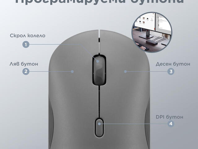 - Програмируеми бутони: 6 бутона (ляв, десен, скролване, DPI, превключване на канали и сдвояване, включване/изключване)