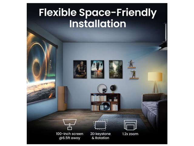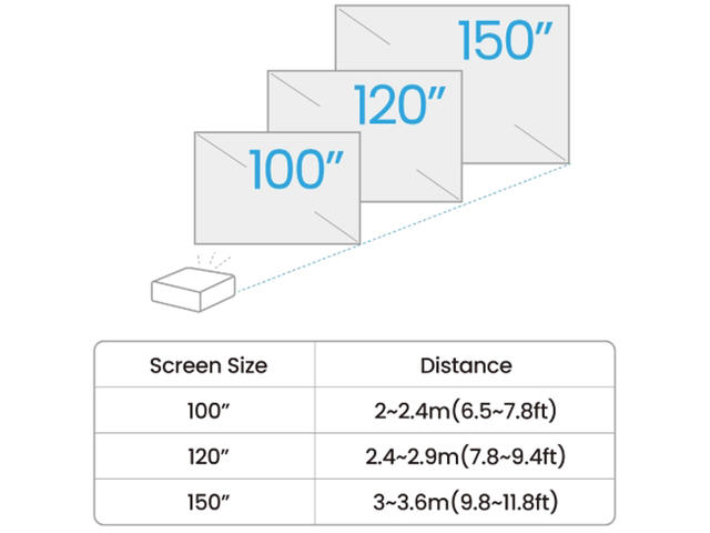 - До 150-инчов екран върху стена или таван