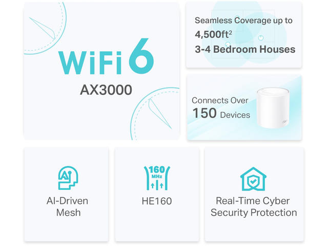 - AX3000 Dual Band WiFi - Супер бърз WiFi 6 със скорости до 3,0 Gbps