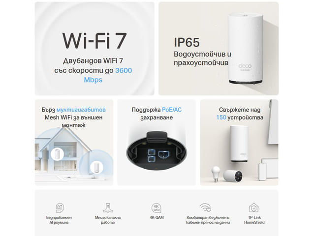 - Безпроблемен роуминг, управляван от изкуствен интелект – формира унифицирана мрежа с вграден AI-роуминг, създавайки идеалното Wi-Fi решение за вашия дом.