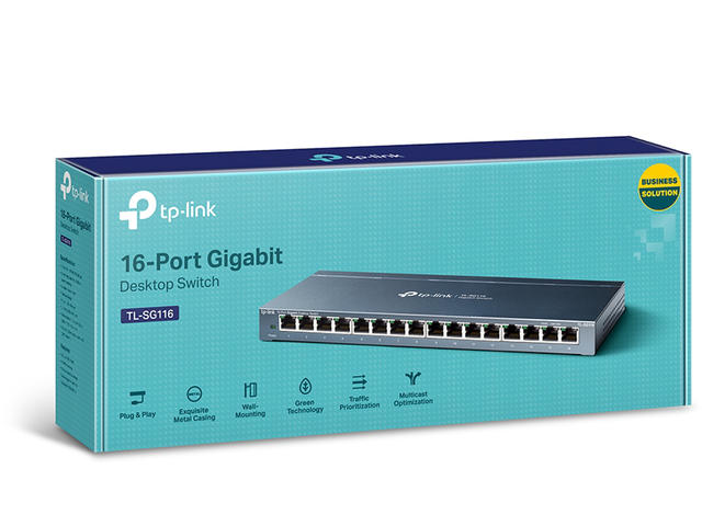 Отличаващ се с 16 10/100 / 1000Mbps портове, TL-SG116 значително разширява капацитета на вашата мрежа, като позволява незабавно прехвърляне на големи файлове. Така че енергийните потребители в дома, офиса, работната група или творческата производствена среда вече могат да преместват големи, интензивни за честотната лента файлове по-бързо. Прехвърляйте графични, CGI, CAD или мултимедийни файлове в мрежата незабавно.
