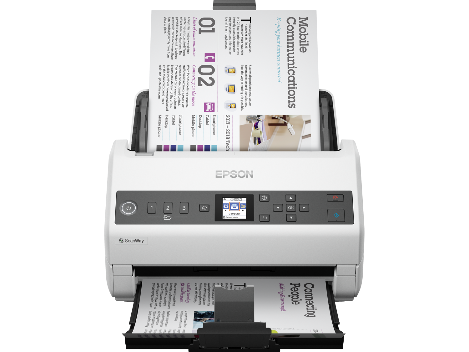 - ADF Максимален размер на документа: 215.9 мм x 6096 мм (Хоризонтално x Вертикално)