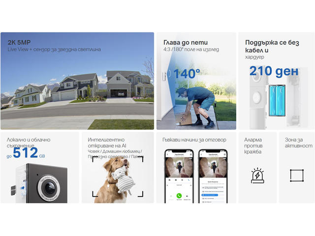 - Безплатно откриване и известяване: Сигнали за човек, превозно средство, домашен любимец и пакет.
