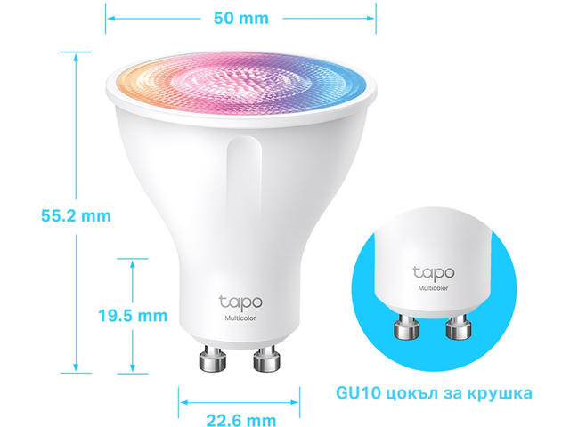 - Отдалечено управление: Мигновено включване/изключване на крушката, където и да сте чрез приложението Tapo.