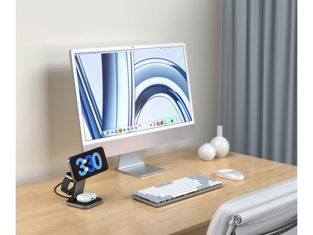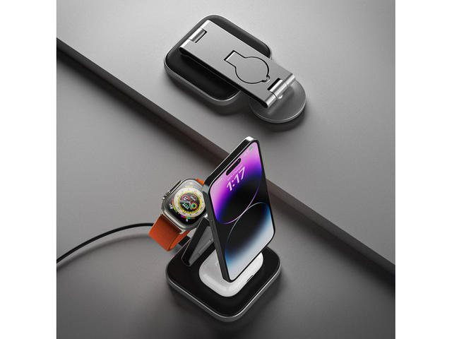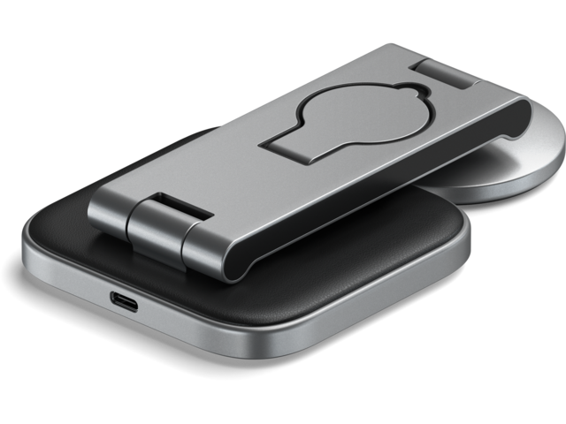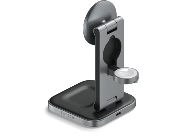 - Дръжте ежедневните си принадлежности заредени и подредени със сгъваемата стойка за безжично зареждане Qi2 Satechi 3 в 1.