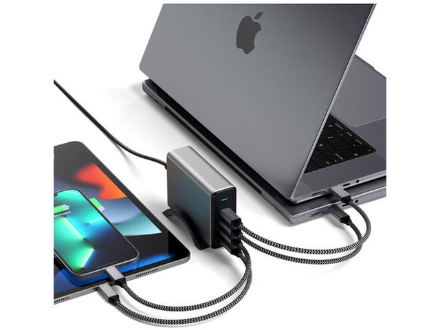 - Технология на галиев нитрид (GaN) за едновременно захранване на до четири устройства.
