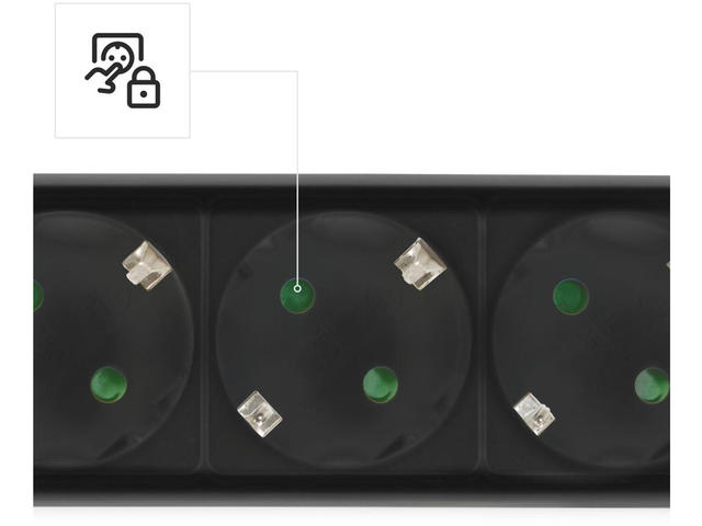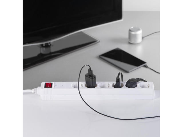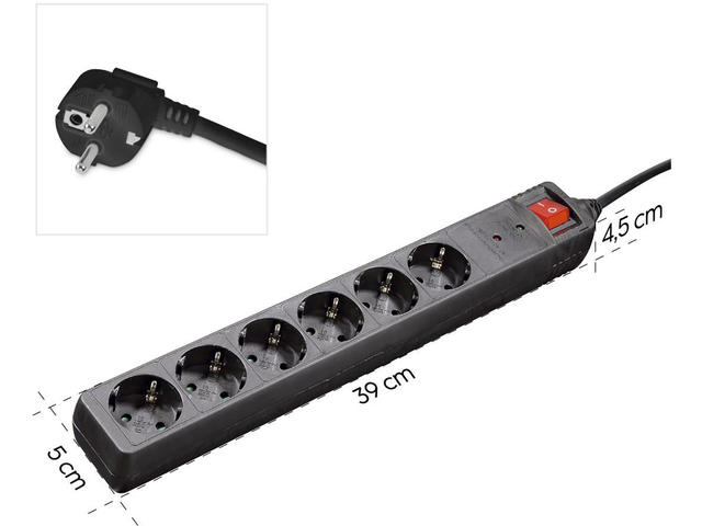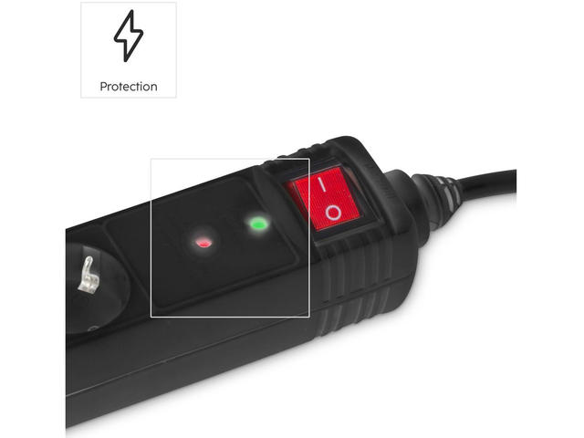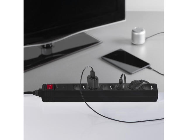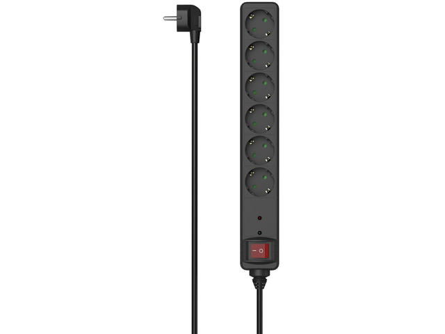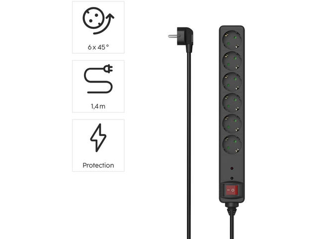 • Разклонител със защита от пренапрежение , 6 гнeзда, 1.4м кабел черен