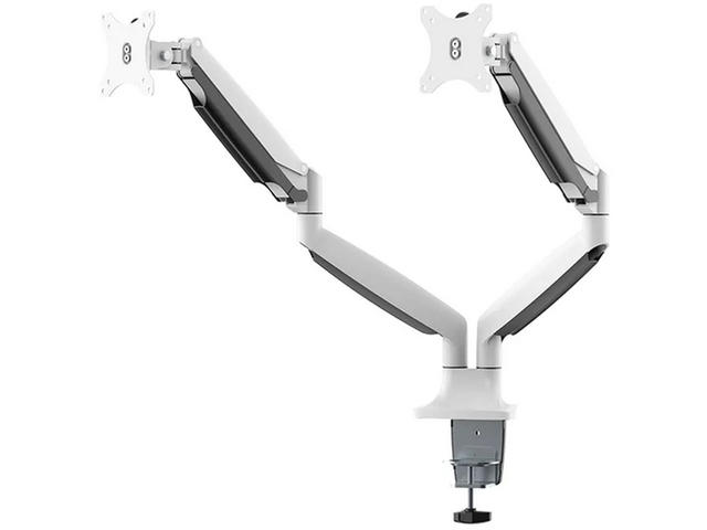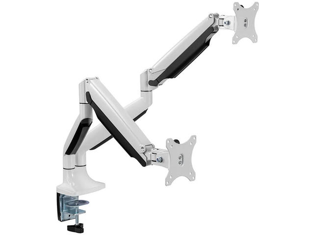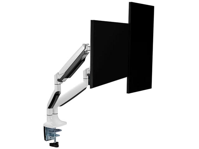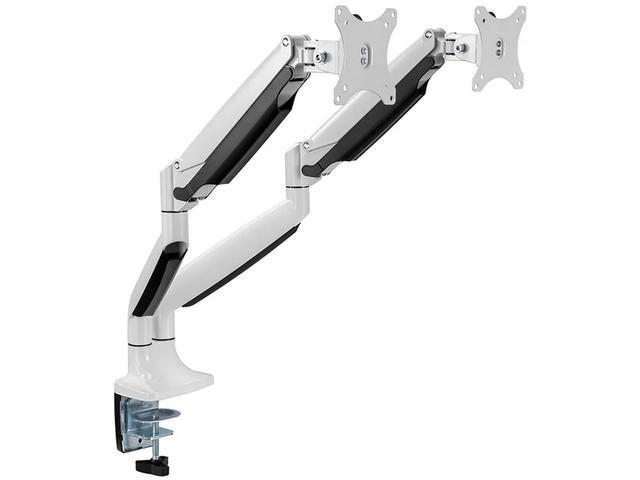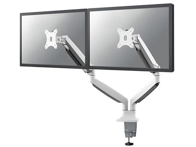 Настолната стойка на Neomounts, модел NM-D750DWHITE, е накланяща се, въртяща се и завъртаща се настолна стойка за 2 плоски екрана с диагонал до 32“. Тази стойка е чудесен избор за спестяване на място при поставяне на бюра с помощта на скоба за бюро или втулка.